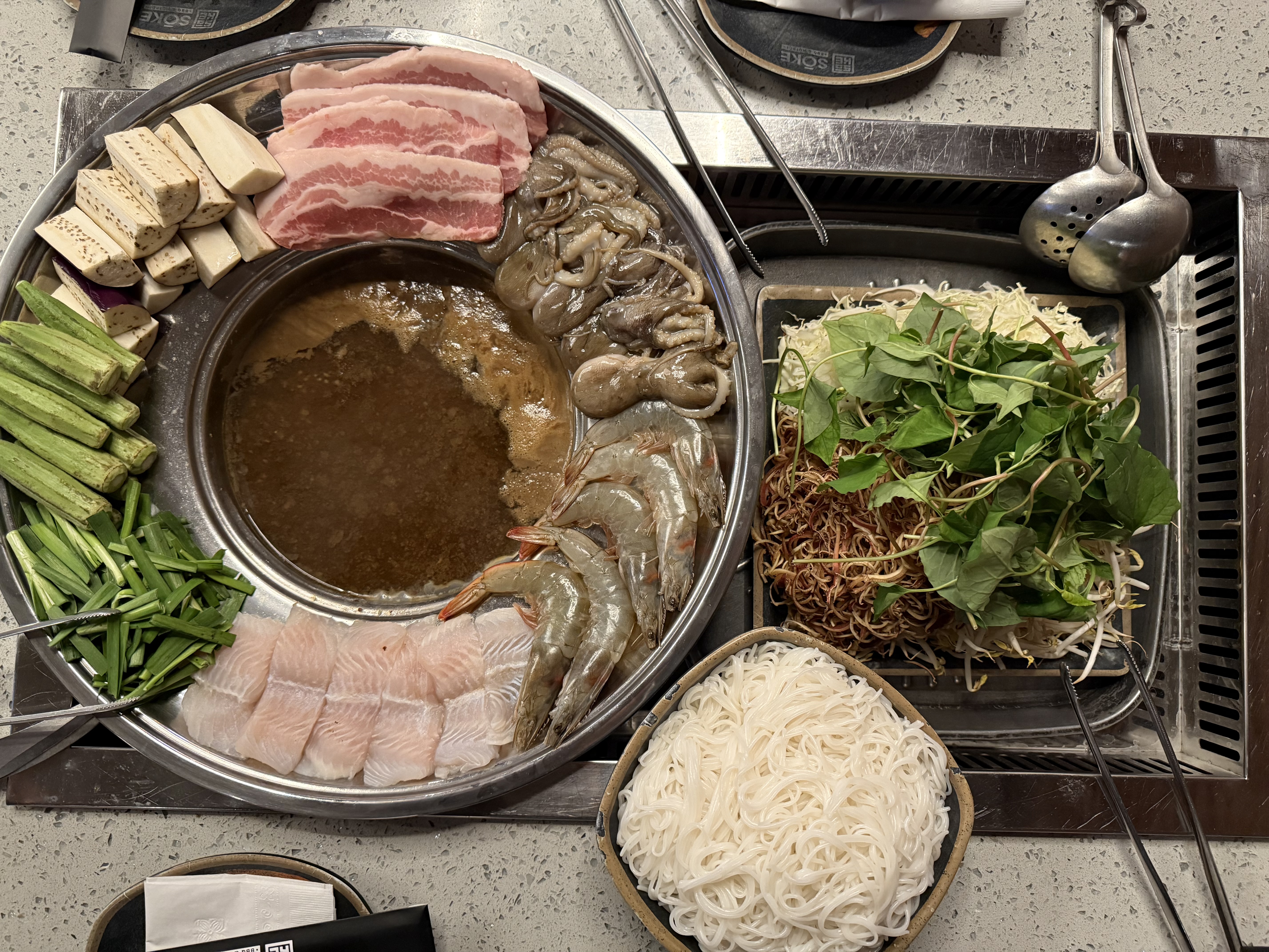 We did that all you can eat hot pot and Korean barbecue for lunch. It was amazing! So many selections of sauces to dip your meat in and lots of selections of broth for your hot pot and meat and vegetable options!!! We will be back soon!